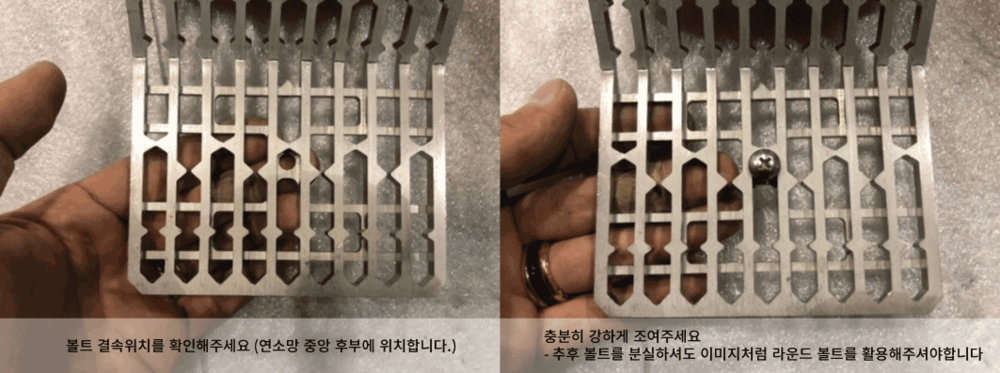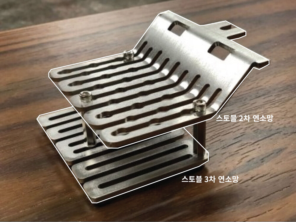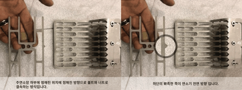 *사진상 스토블 3차 연소망의 구성품인 육각 기둥은 열변형의 이유로 볼트+너트로 변경 되었습니다.