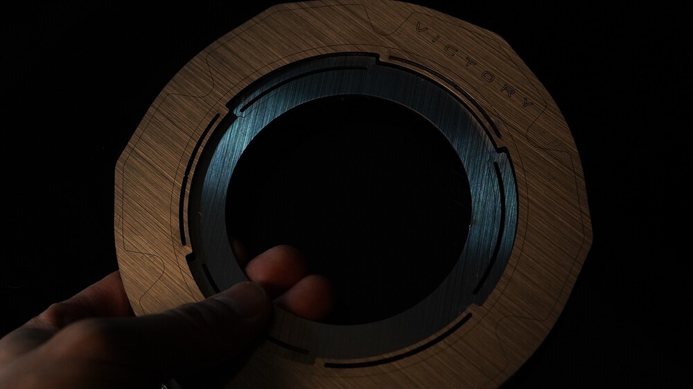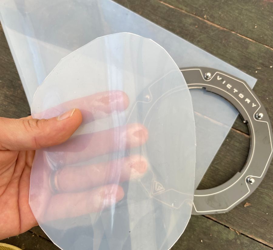 +알루미늄 플레이트를 원단에 대고 링안쪽의 원형으로 절취 후 사용합니다.